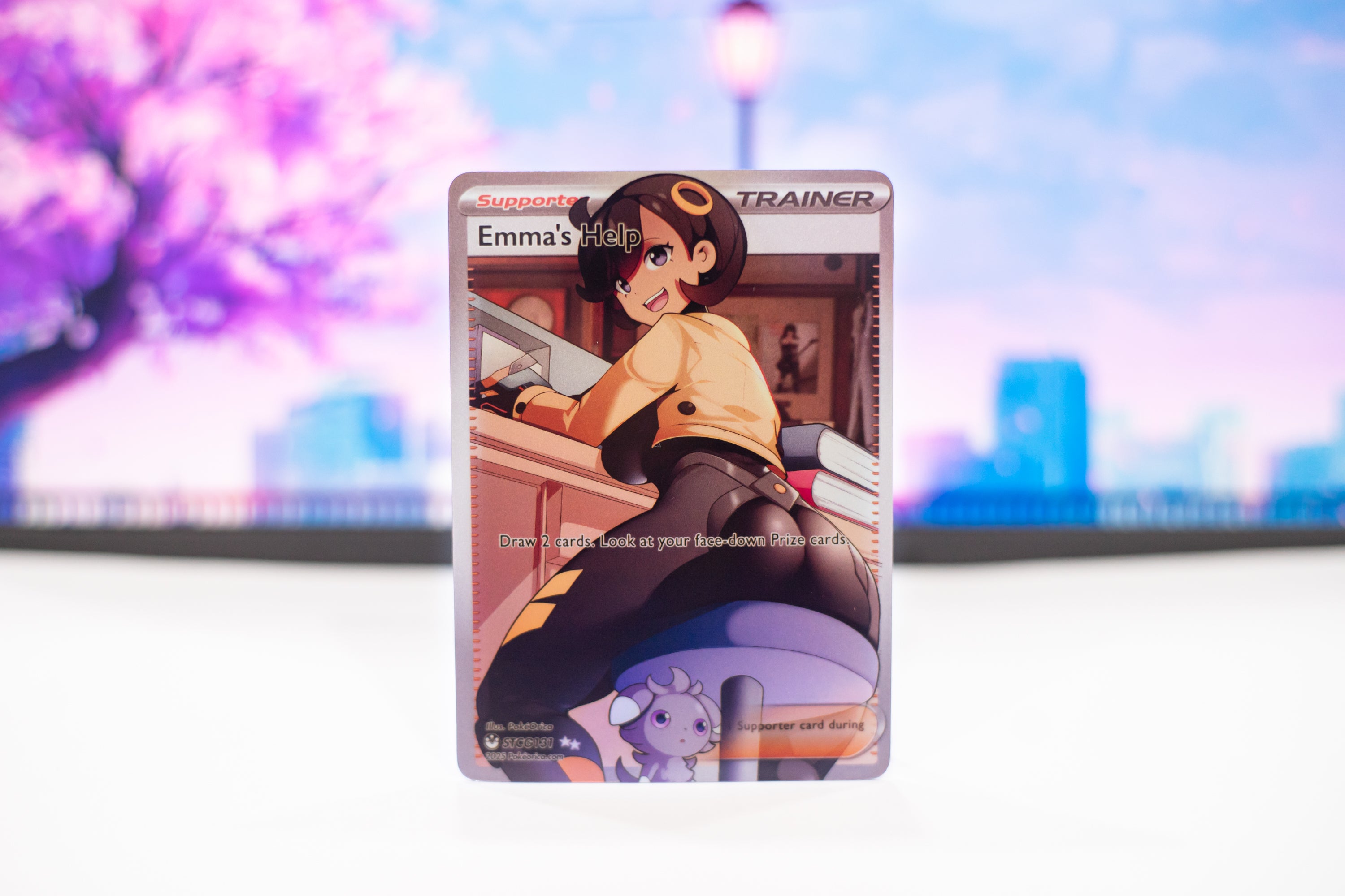 A custom made Holographic Full Art Card of Emma. Each card is packed in a penny sleeve and...