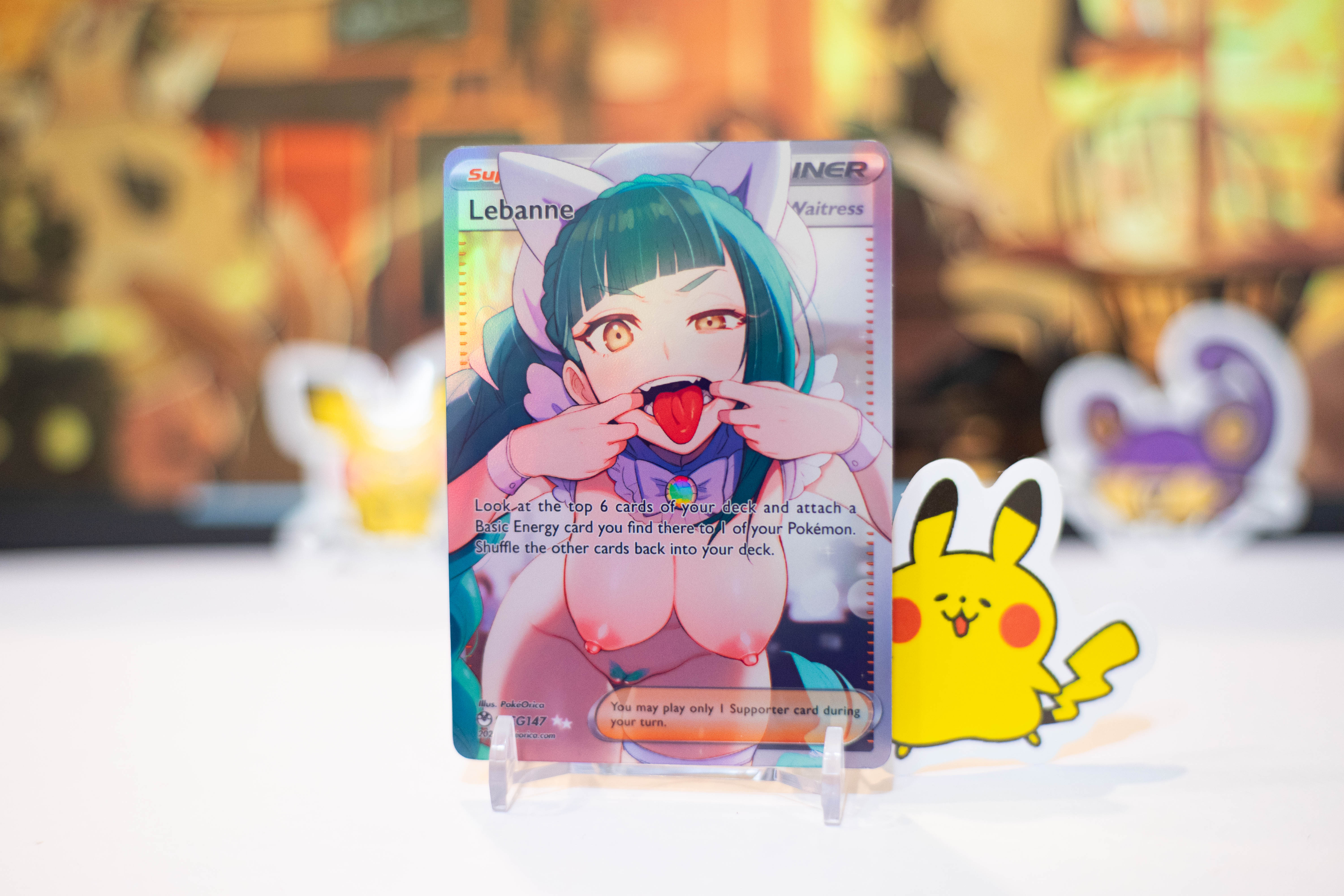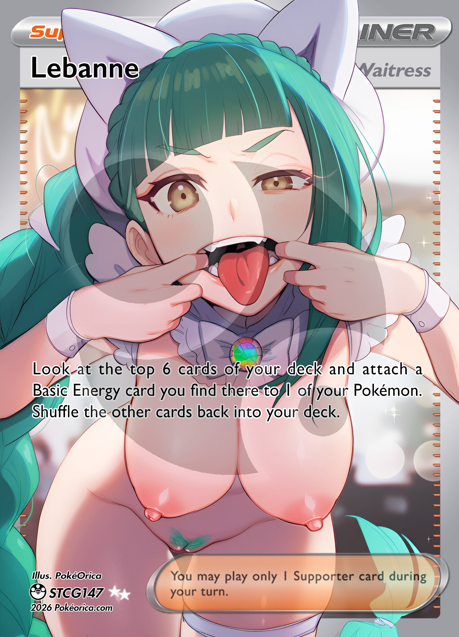 A custom made Holographic Full Art Card of Lebanne (Using the card effect of Waitress).