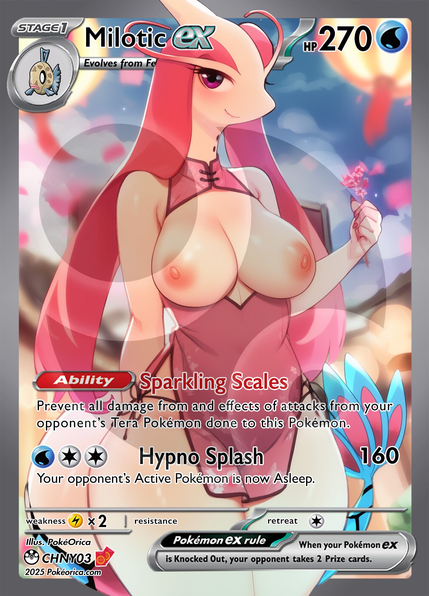 A custom made Chinese New Year Holographic Full Art Card of Milotic available for only a limited time.