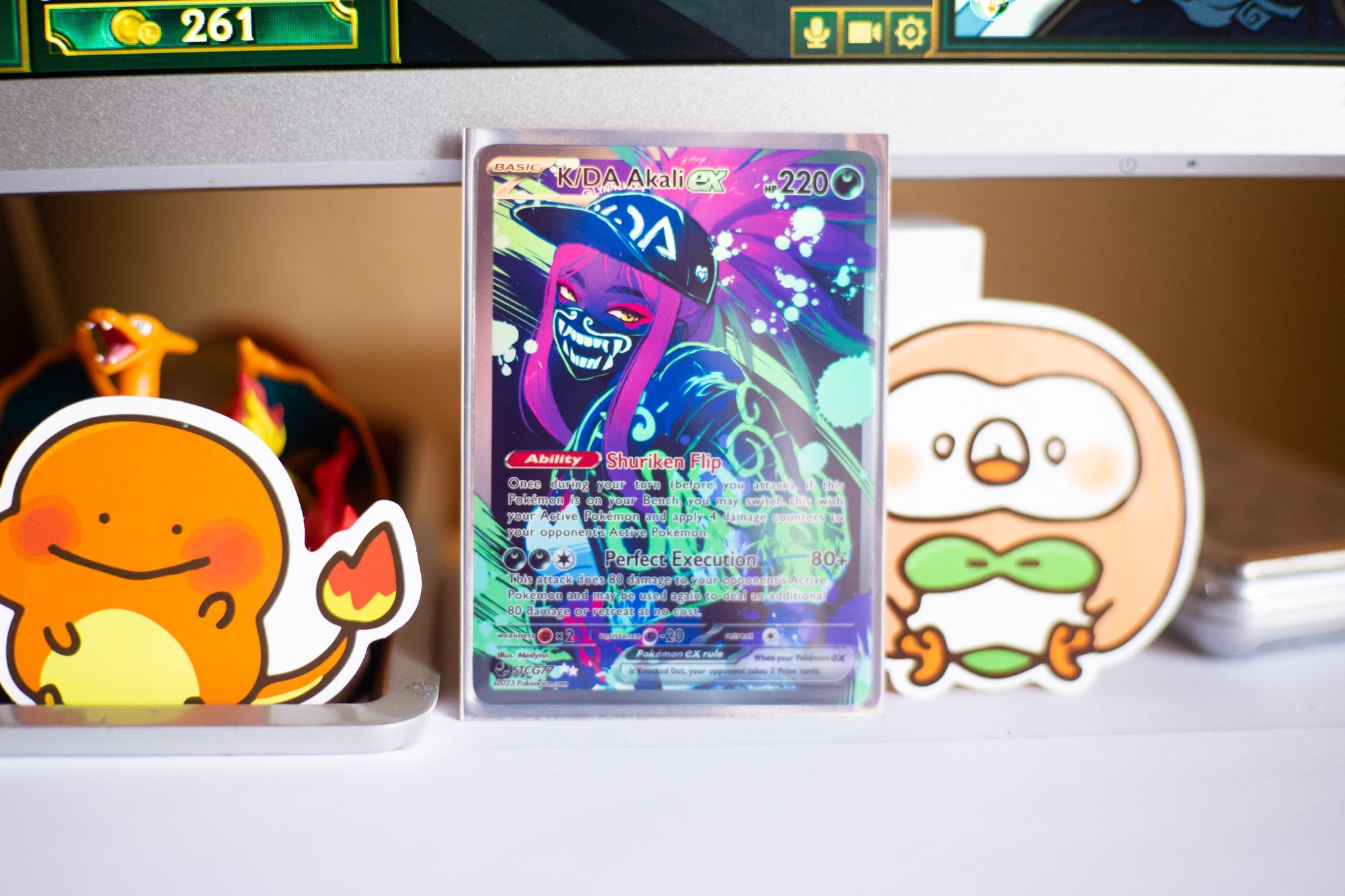 A custom made Holographic Full Art Card of Akali from League of Legends