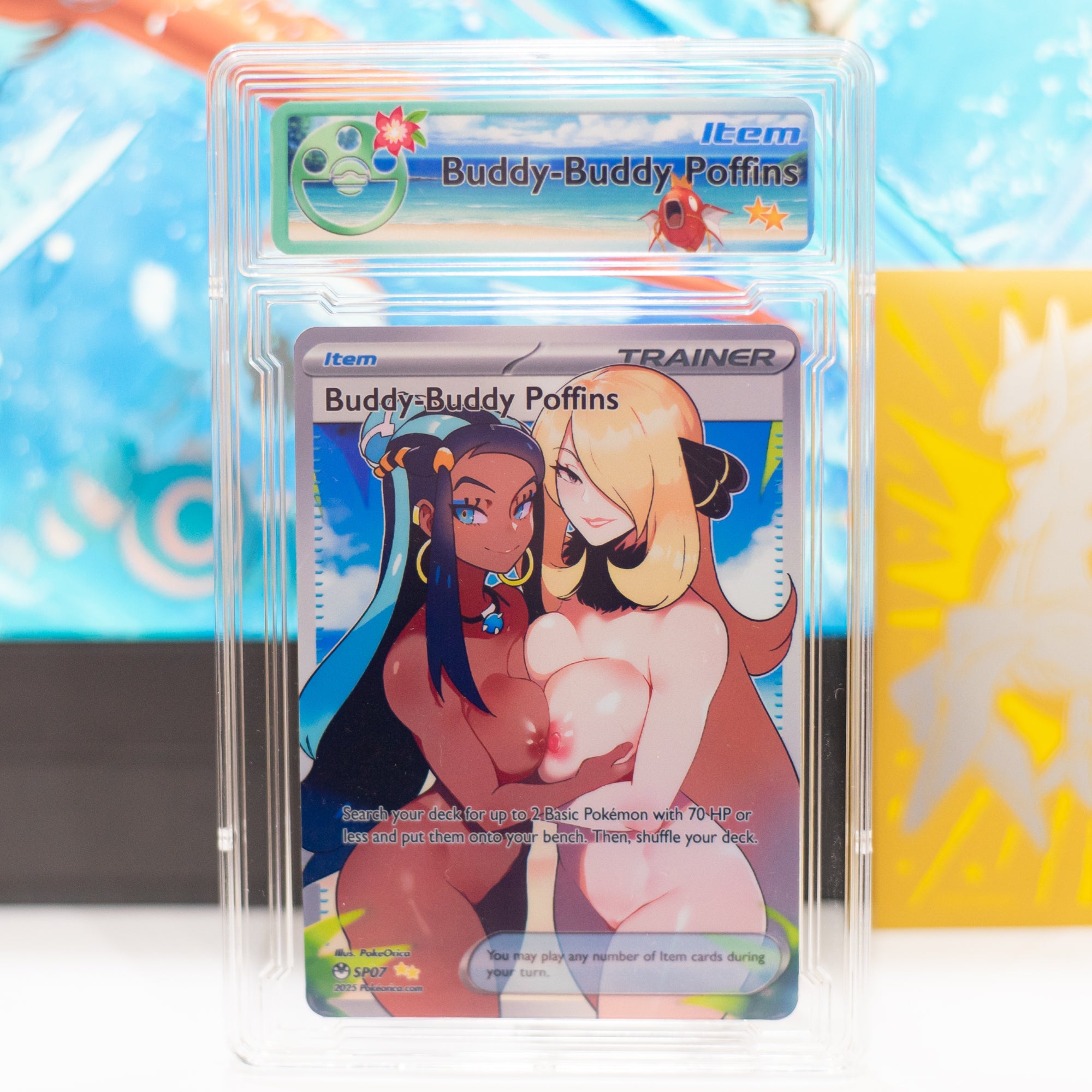 A custom made Holographic Full Art Card Slab of Buddy Buddy Poffin available for only a limited time.